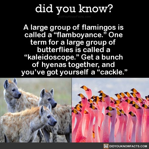 tennesseesuz emailed that she really liked this trivia, especially about the flamingos. flamingos are her favorite! and posted on her birthday for that reason! happy birthday, suz! i like the idea of the cackle, myself.